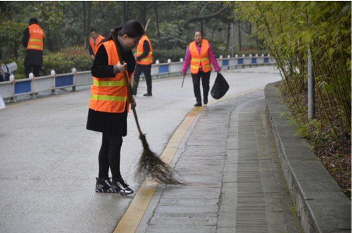 大家不怕臟、不怕累、密切配合,對公園道路及綠化帶內(nèi)的落葉、雜草、垃圾等進行了全面清理打掃,整條道路上洋溢著一派團結(jié)協(xié)作、奮發(fā)向上的融洽氣氛。經(jīng)過2個多小時的緊張勞動,被打掃過的道路煥然一新,受到公園工作人員和過往群眾的一致好評。