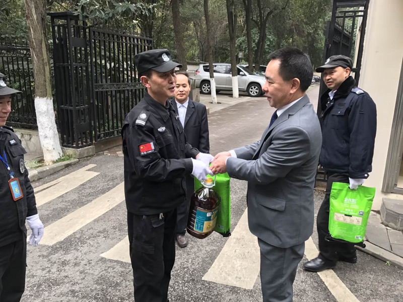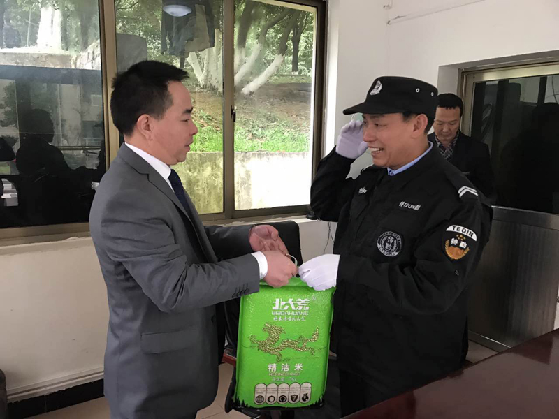 (陟翔集團(tuán)股東代表李鵠為各點保安員送上慰問品)