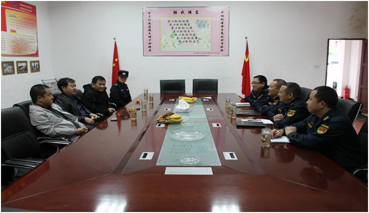 11月15日,省廳治安總隊龍副總隊長在黔東南州公安局治安支隊、特警支隊領導的陪同下蒞臨黔東南州分公司檢查指導工作。