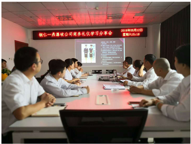 禮儀,是一個(gè)人內(nèi)在修養(yǎng)和素質(zhì)的外在體現(xiàn)。學(xué)習(xí)禮儀,有助于提升自己的個(gè)人魅力。生活中一個(gè)不經(jīng)意的小動(dòng)作,往往體現(xiàn)了一個(gè)人的素養(yǎng)。2018年5月12日,銅仁一鼎爆破公司在公司會(huì)議室開展了商務(wù)禮儀學(xué)習(xí)分享會(huì),此次學(xué)習(xí)分享會(huì)的主要內(nèi)容是:結(jié)合公司實(shí)際情況學(xué)習(xí)分享總公司關(guān)于商務(wù)禮儀培訓(xùn)的知識(shí),如:商務(wù)接待拜訪禮儀、接待禮儀及中餐禮儀。