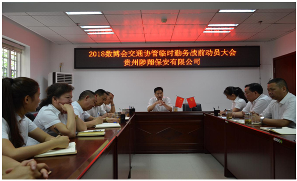 2018中國(guó)國(guó)際大數(shù)據(jù)產(chǎn)業(yè)博覽會(huì)于5月26日至29日在貴陽(yáng)舉行,作為貴州保安行業(yè)的領(lǐng)軍企業(yè),貴州陟翔保安有限公司承接了貴陽(yáng)數(shù)博會(huì)園區(qū)500名交通協(xié)管臨時(shí)勤務(wù),為確保此次臨時(shí)勤務(wù)的順利實(shí)施和完成,5月18日下午,總公司全體員工、保安公司全體領(lǐng)導(dǎo)及大隊(duì)長(zhǎng)在總公司會(huì)議室召開(kāi)了2018數(shù)博會(huì)交通協(xié)管臨時(shí)勤務(wù)戰(zhàn)前動(dòng)員大會(huì),會(huì)上,總經(jīng)理陳春生同志對(duì)此次臨時(shí)勤務(wù)作出重要指示,并對(duì)此次臨時(shí)勤務(wù)做了統(tǒng)一安排部署。數(shù)博會(huì)勤務(wù)領(lǐng)導(dǎo)小組組長(zhǎng)由總公司總經(jīng)理馮波擔(dān)任,指揮組組長(zhǎng)由保安公司總經(jīng)理陳春生擔(dān)任,同時(shí)還成立了協(xié)調(diào)組、后勤保障組,新聞報(bào)道組等,對(duì)所有參與人員進(jìn)行明確分工。